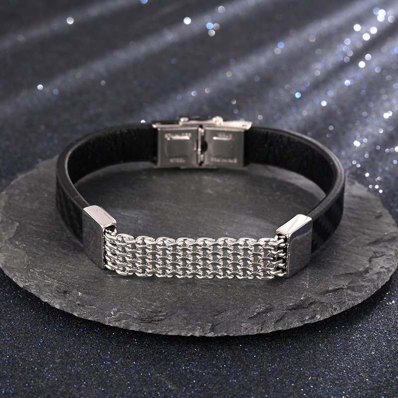 Vintage Style Classic Style Geometric Pu Leather Titanium Steel Men’s Bracelets Men Cord & Leather Bracelets.